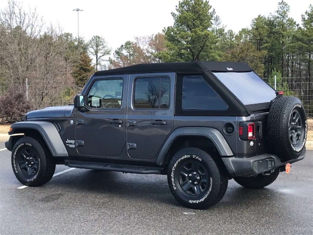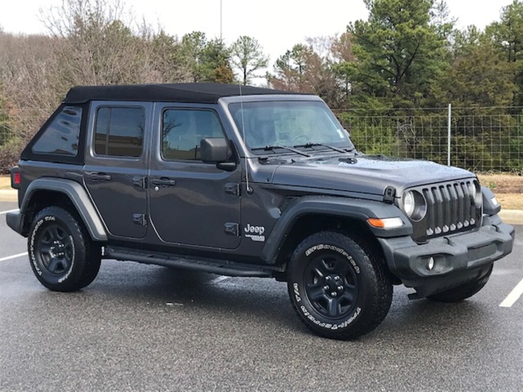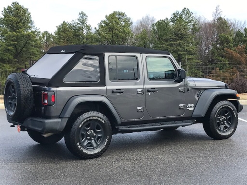 A hardy off-roader for very few dollars. Unlimited Sport-trimmed trade with four hard doors and a slant-back soft top, plus running boards, cruise, a V6 and a 6-speed stick.